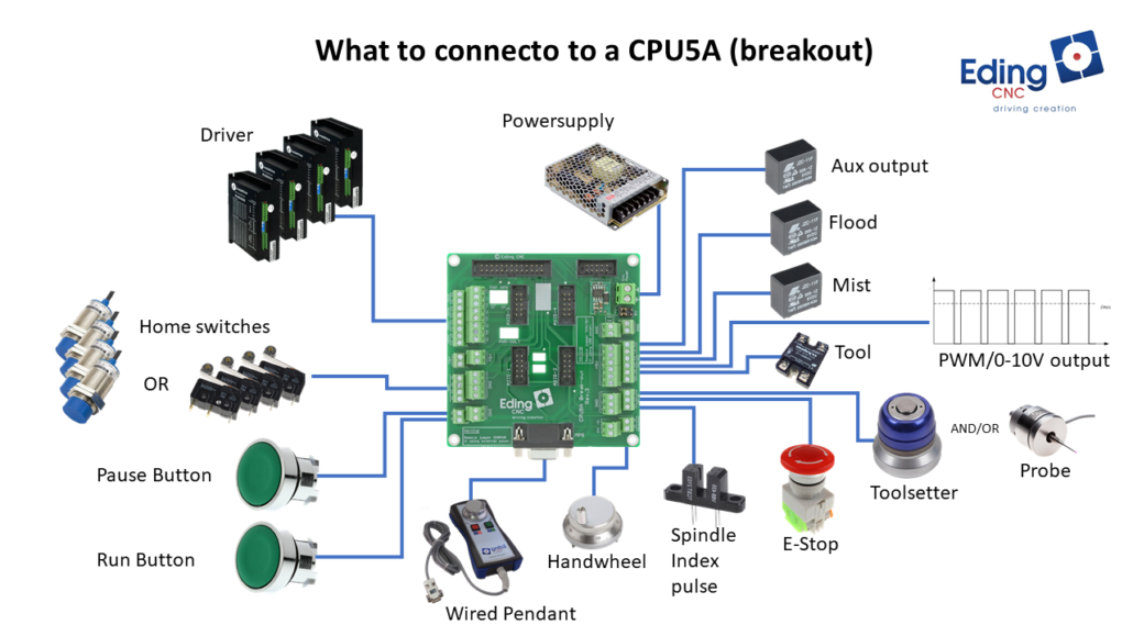Вам потрібен контролер з ЧПУ за чудовою ціною та відмінною функціональністю? Ти знайшов це! Порівняно з CPU5A3 він керує до 4 осей прямо з коробки і пропонує необхідне вам введення/виведення з ЧПУ.