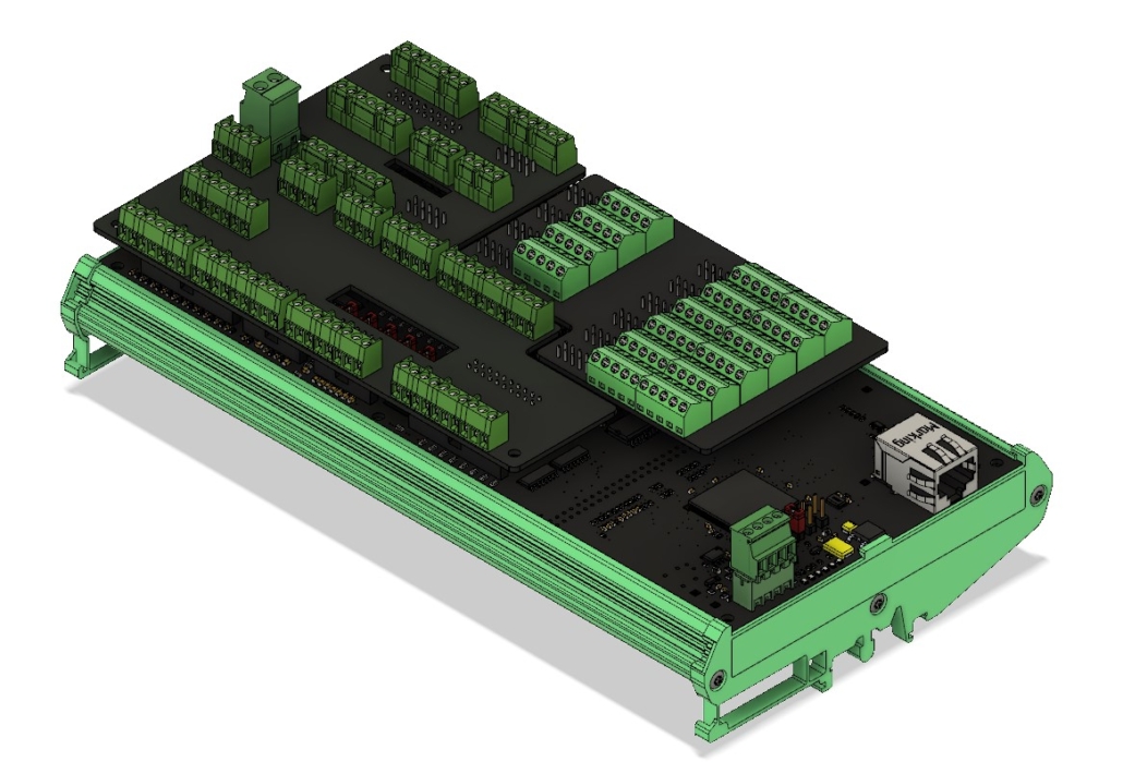 Плата має 2 стандартні заголовки коробки (IDC), що дозволяє просто підключити плату до користувальницьких плат. Для легкого підключення проводів є окрема плата. А для швидкого встановлення доступний індивідуальний корпус DIN-рейки.